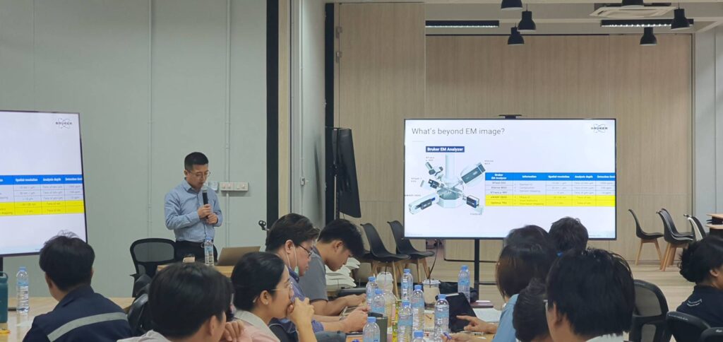 ในระหว่างวันที่ 18–19 กันยายน 2568 บริษัท เครส นาโนโซลูชั่น (ประเทศไทย) จำกัด ร่วมกับ บริษัท Brüker Nano Analytics สาขาวิชาวิศวกรรมเครื่องกล คณะวิศวกรรมศาสตร์ มหาวิทยาลัยเทคโนโลยีราชมงคลกรุงเทพ และศูนย์พัฒนาและวิเคราะห์สมบัติของวัสดุ (MPAD) ภายใต้สถาบันวิจัยวิทยาศาสตร์และเทคโนโลยีแห่งประเทศไทย (วว.) ได้จัดโครงการสัมมนาเชิงปฏิบัติการหัวข้อ “การวิจัยวัสดุด้วยเทคนิค SEM-EBSD ขั้นสูง เพื่อส่งเสริมและพัฒนางานวิจัยและอุตสาหกรรม” ขึ้นโดยมีวัตถุประสงค์เพื่อเปิดโอกาสให้บุคลากรในสายงานวิจัยและพัฒนาวัสดุทั้งภาครัฐและเอกชน ได้เรียนรู้และเพิ่มพูนทักษะด้านการวิเคราะห์โครงสร้างและผลึกในวัสดุด้วยเทคนิค SEM-EBSD ซึ่งเป็นหนึ่งในเครื่องมือสำคัญของงานวิจัยสมัยใหม่ที่ช่วยยกระดับคุณภาพของงานอุตสาหกรรมวัสดุได้อย่างแท้จริง